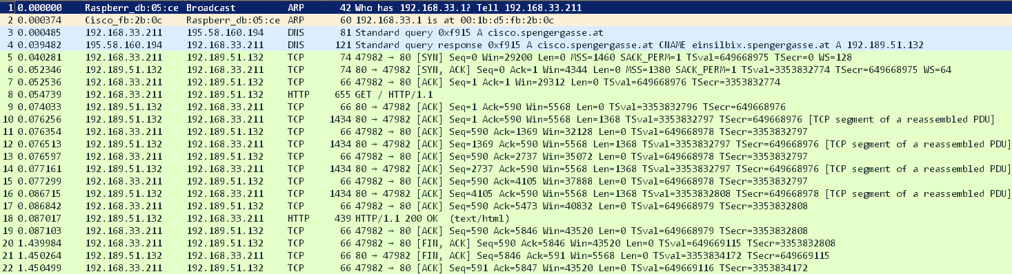 Mitschnitt der Schritte 2 bis 5 mit Hilfe von Wireshark